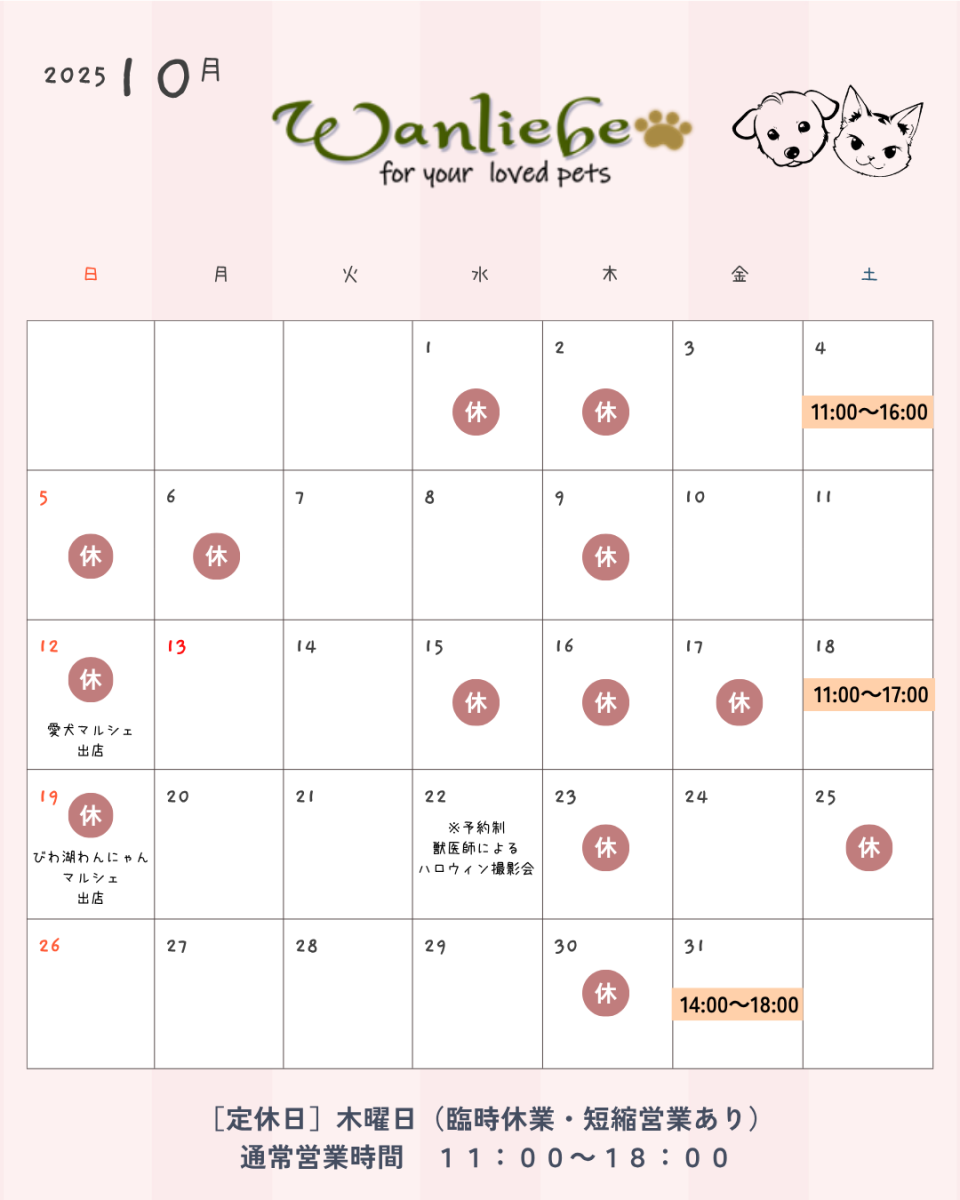 2025年10月の営業スケジュールを公開しました本日の営業はこちらをご確認ください。